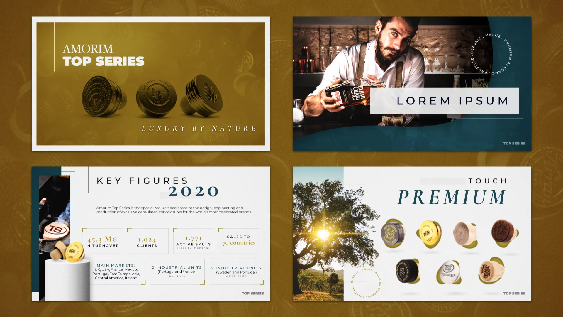 Em colaboração com a Storyline, foram desenvolvidas as guidelines de identidade visual para a apresentação da Amorim Top Series, sempre tendo em mente a essência única da marca. O projeto foi pensado para refletir o segmento de luxo, destacando a sofisticação e a elegância que definem a indústria. Cada elemento do design foi cuidadosamente elaborado para transmitir exclusividade, modernidade e o prestígio inerente à marca, garantindo uma comunicação visual alinhada com os valores e a identidade do cliente.